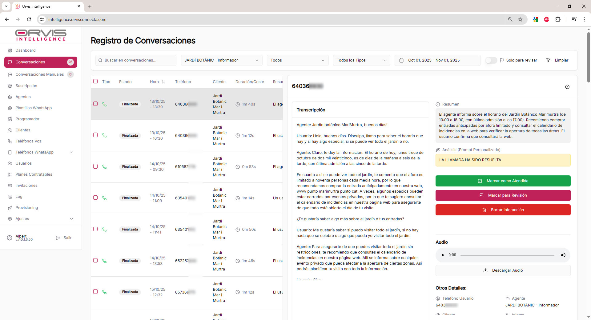Ejemplo de llamada entrante atendida por IA